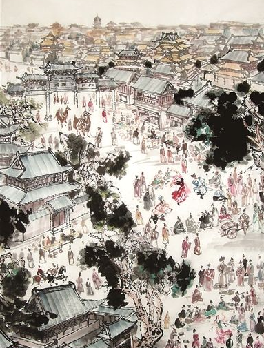 北市,是唐代洛阳的三大市场之一,设立于显庆二年(657年)十二月,位于洛河北岸,临近新潭码头,是闻名四海的国际贸易市场。