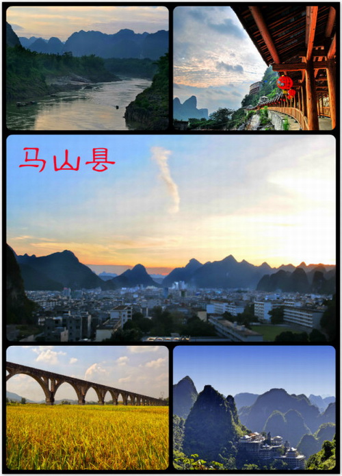 马山县,隶属广西壮族自治区南宁市,地处广西壮族自治区中北部,南宁市北部,红水河中段南岸,大明山北麓。介于东经107°42′38″~108°30′00″,北纬23°24′06″~24°02′06″之间。东与上林县、来宾市忻城县交界,南与武鸣区相邻,西与百色市平果市、河池市大化瑶族自治县接壤,北隔红水河与河池市都安瑶族自治县相望。县域呈东西绵长,南北狭窄之不规则长形,东西最大横距82千米,南北最大纵距71千米,与邻县边界总长412.27千米。马山县总面积2340.76平方千米。根据第七次人口普查数据,截至2020年11月1日零时,马山县常住人口为382430人。
