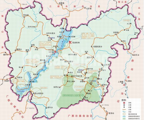 荔波县,隶属于贵州省黔南布依族苗族自治州,地处贵州省最南端,云贵高原向广西丘陵过渡地带,东南与广西壮族自治区的环江毛南族自治县、南丹县毗邻,总面积2431.8平方千米。