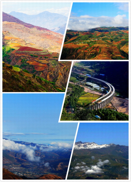 东川区地处云贵高原北部边缘,境内最高海拔4344.1米,最低海拔695米,高差3649.1米。东川区境内矿产资源丰富,为中国六大产铜基地之一,轿子雪山被誉为“滇中第一山”,小江流域为世界典型暴雨泥石流区被称为“泥石流的天然博物馆”,小江两岸是昆明市最大的热带作物区。