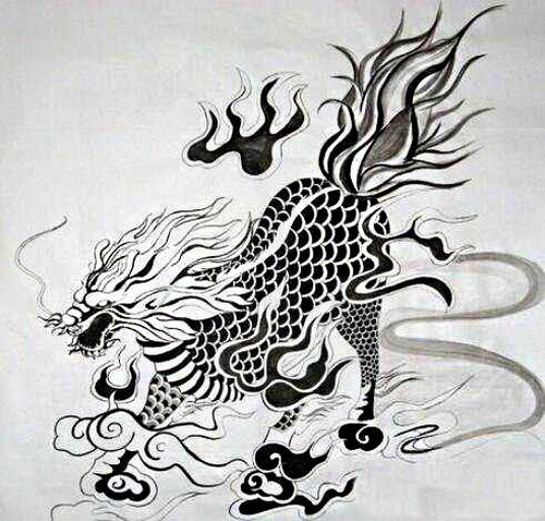 据《瑞应图》记载:麒麟长着羊头,狼的蹄子,头顶是圆的,身上是彩色的,高大概2米左右。《说文解字·十》记载:麒麟身体像麝鹿,尾巴似龙尾状,还长着龙鳞和一只角。
