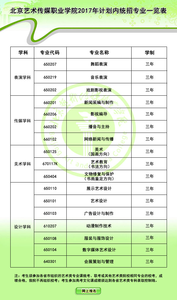 2017年北京艺术传媒职业学院计划内招生及专业介绍