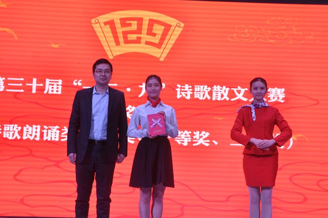 本网讯(通讯员 程琳) 喜讯,在12月7日湖北省高校第三十届“一二•九”诗歌散文大赛决赛中,我校推送的情景诗歌朗诵《少年中国说》,从武汉大学、华中师范大学等组成的12支高水平高校代表队中脱颖而出,夺得冠军,荣获特等奖,创造了学校自升专以来的又一个全省第一。