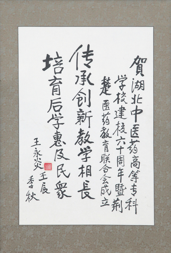 中国工程院院士、中国中医科学院名誉院长王永炎为学校题词
