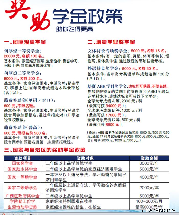 广西培贤国际职业学院有奖学金、助学金吗?有多少,怎么评定的?申请有哪些必备条件?