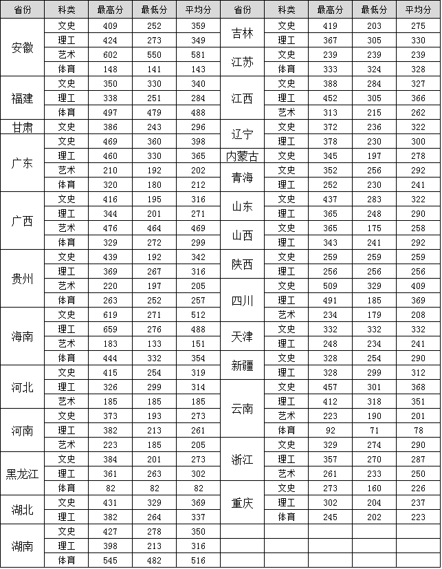 海南经贸职业技术学院2016年各省录取分数情况表