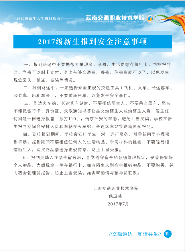 我校2017年新生入学报到指南(8月28日、29日报到)