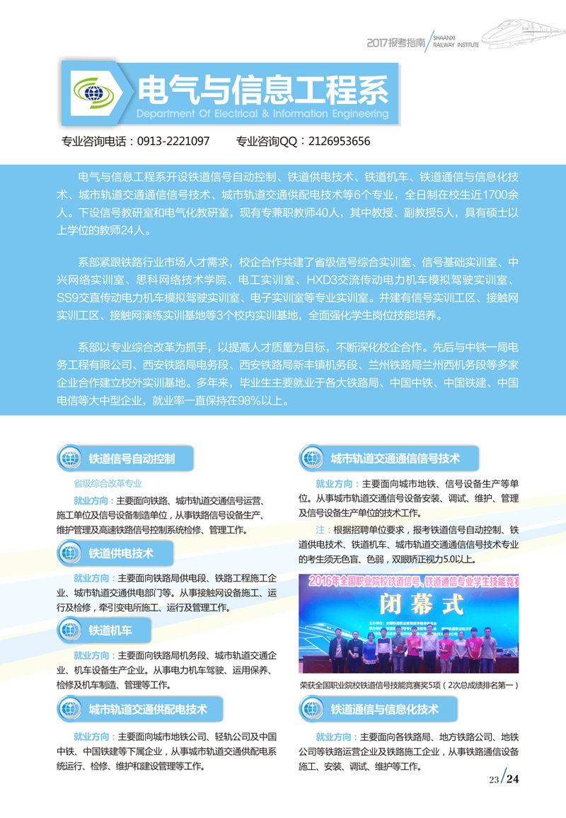 陕西铁路工程职业技术学院电气与信息工程系专业