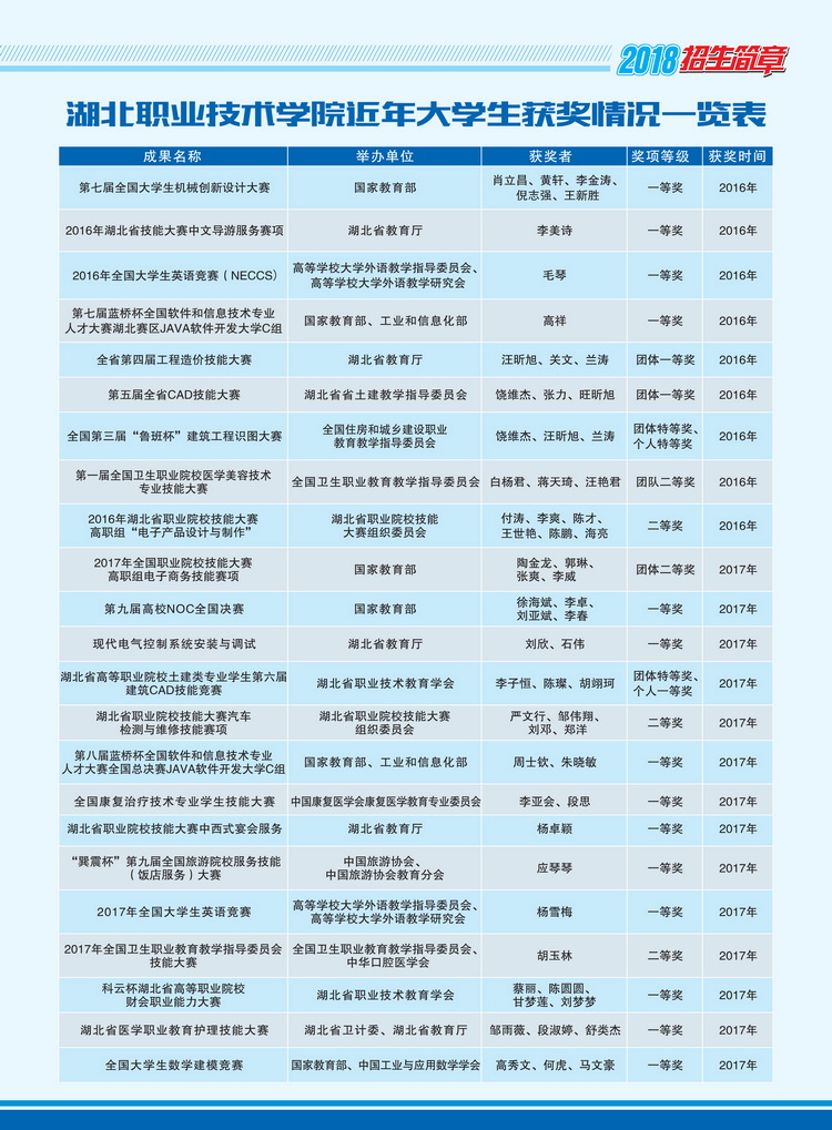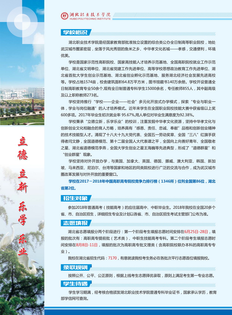 湖北职业技术学院2018年招生简章