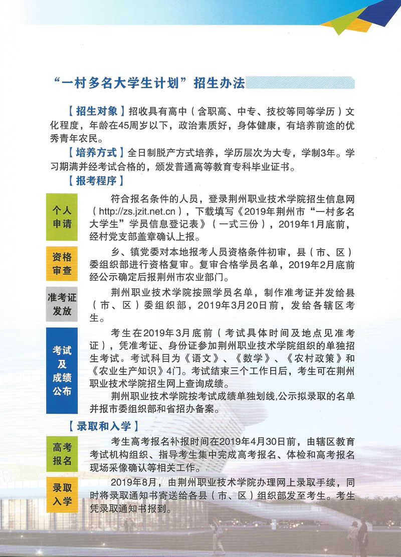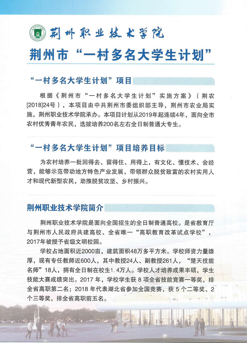 荆州职业技术学院“一村多名大学生计划”2019年招生简章