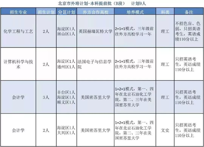 北京石油化工学院北京双培外培招生计划及招生专业公布:
