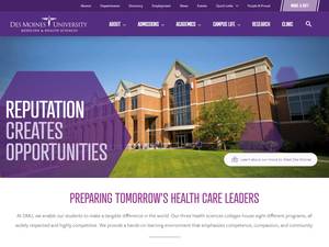 得梅因大学成立于1898年,是一所非营利性私立专业高等教育机构,位于爱荷华州小城市得梅因(人口范围为50,000-249,999名居民)的城市环境中。得梅因大学(DMU)由高等教育委员会正式认证,是一所规模很小(统一招生范围:1,000-1,999名学生)的美国男女同校高等教育机构。得梅因大学(DMU)提供几个研究领域的课程和项目,以获得官方认可的高等教育学位,如学士学位、硕士学位和博士学位。有关更多详细信息,请参阅海外院校排名。这所有122年历史的美国高等教育机构根据入学考试和学生过去的学业成绩和成绩实行选择性录取政策。欢迎国际学生申请入学。DMU还为学生提供多项学术和非学术设施和服务,包括图书馆、体育设施、经济资助和/或奖学金、在线课程和远程学习机会,以及行政服务。