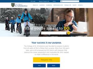 圣斯科拉斯蒂卡学院成立于1912年,是一所非营利性私立高等教育机构,位于明尼苏达州小城市德卢斯(人口范围为50000-249999人)的城市环境中。该学院还在以下地点设有分校:圣保罗、布雷内德、圣克劳德、罗切斯特。经高等教育委员会正式认可的圣斯科拉斯蒂卡学院(CSS)是一所小型(uniRank招生范围:5000-5999名学生)男女同校的美国高等教育机构,正式隶属于基督教天主教。圣斯科拉斯蒂卡学院(CSS)提供课程和项目,以获得官方认可的高等教育学位,如若干研究领域的学士学位、硕士学位。有关更多详细信息,请参见下面的uniRank学位等级和学习领域矩阵。这所拥有108年历史的美国高等教育机构根据入学考试和学生过去的学习成绩和成绩实行选择性录取政策。入学率在60-70%之间,这使得这个美国高等教育机构在某种程度上具有选择性。国际申请人有资格申请入学。CSS还为学生提供一些学术和非学术设施和服务,包括图书馆、住房、体育设施、经济援助和/或奖学金、留学和交流计划、在线课程和远程学习机会,以及行政服务。