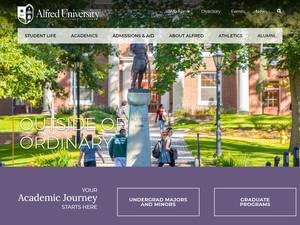 阿尔弗雷德大学成立于1836年,是一所非营利性私立高等教育机构,位于纽约中部城市阿尔弗雷德(人口2500-9999)的农村地区。阿尔弗雷德大学(Alfred University)是由美国中部各州高等教育委员会(Middle State Commission on Higher Education)正式认证的一所小型男女同校美国高等教育机构(uniRank招生范围:2000-2999名学生)。阿尔弗雷德大学提供课程和项目,以获得官方认可的高等教育学位,如若干研究领域的学士学位、硕士学位、博士学位。有关更多详细信息,请参见下面的uniRank学位等级和学习领域矩阵。这所拥有184年历史的美国高等教育机构根据入学考试和学生过去的学习成绩和成绩实行选择性录取政策。入学率在60-70%之间,这使得这个美国高等教育机构在某种程度上具有选择性。欢迎国际学生申请入学。阿尔弗雷德大学还为学生提供若干学术和非学术设施和服务,包括图书馆、住房、体育设施、经济援助和/或奖学金、出国留学和交流计划、在线课程和远程学习机会,以及行政服务。