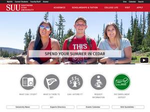 南犹他大学成立于1897年,是一所非营利性公立高等教育机构,位于犹他州锡达市(人口范围为10000-49999人)大镇的农村地区。南犹他大学(SUU)是一所规模较大(uniRank招生范围:15000-19999名学生)男女同校的美国高等教育机构,由西北学院和大学委员会正式认证。南犹他大学(SUU)提供获得官方认可的高等教育学位的课程和计划,如若干研究领域的学士前学位(即证书、文凭、副学士或基础)、学士学位、硕士学位。有关更多详细信息,请参见下面的uniRank学位等级和学习领域矩阵。这所拥有123年历史的美国高等教育机构根据入学考试和学生过去的学习成绩和成绩实行选择性录取政策。入学率在70-80%之间,这使得这家美国高等教育机构在某种程度上具有选择性。国际申请人有资格申请入学。SUU还为学生提供若干学术和非学术设施和服务,包括图书馆、住房、体育设施、经济援助和/或奖学金、出国留学和交流计划、在线课程和远程学习机会,以及行政服务。
