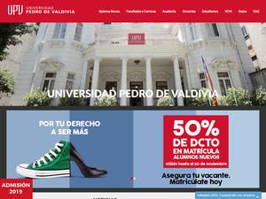 佩德罗·德·瓦尔迪维亚大学(Pedro de Valdivia University)成立于1987年,是一所私立高等教育机构,位于圣地亚哥大都会地区(人口超过500万)。佩德罗·德·瓦尔迪维亚大学(UPV)是智利国家认证委员会(National Accreditation Commission)正式认可的一所中等规模(uni - irank注册范围:6000 - 6999名学生)男女同校的高等教育机构。佩德罗·德·瓦尔迪维亚大学(UPV)提供课程和项目,导致官方承认的高等教育学位,如几个研究领域的学士学位。详情请参阅下面的uniRank学位水平和学习领域矩阵。UPV还为学生提供一些学术和非学术设施和服务,包括一个图书馆,以及行政服务。