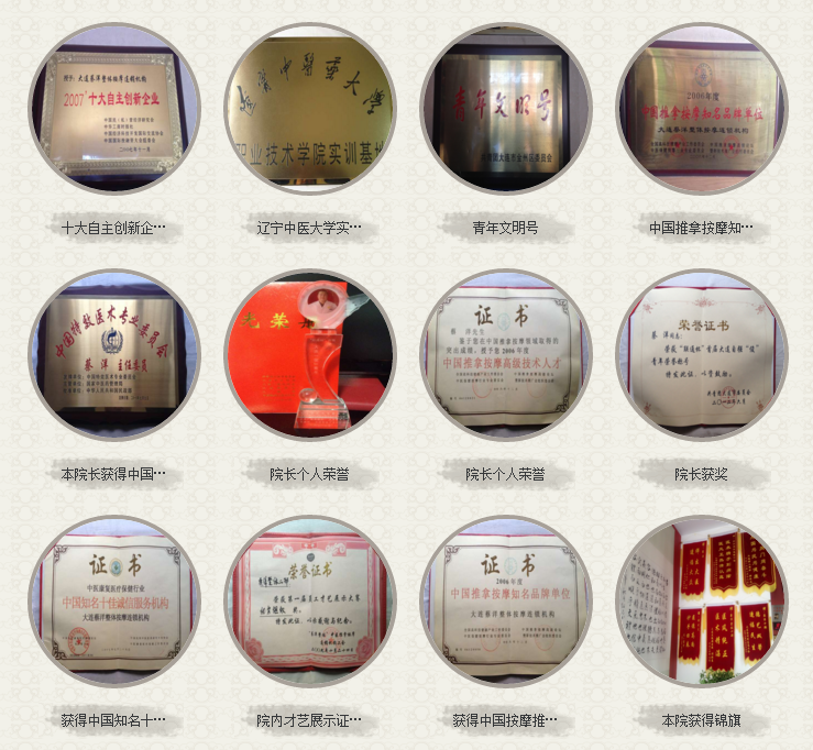 品牌优势:全国卫生单位先进集体;全国教育改革发展优胜单位;辽宁省职业教育示范学校;辽宁省青年文明号;中国知名十佳诚信企业;中国特效医术专业委员会主任;国医大师传承工作室;中国推拿按摩知名品牌单位;辽宁中医药大学实习基地;十大自主创新企业等称荣誉号。