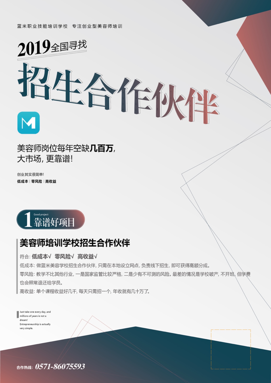 蓝米美容学校面向全国招招生合作伙伴