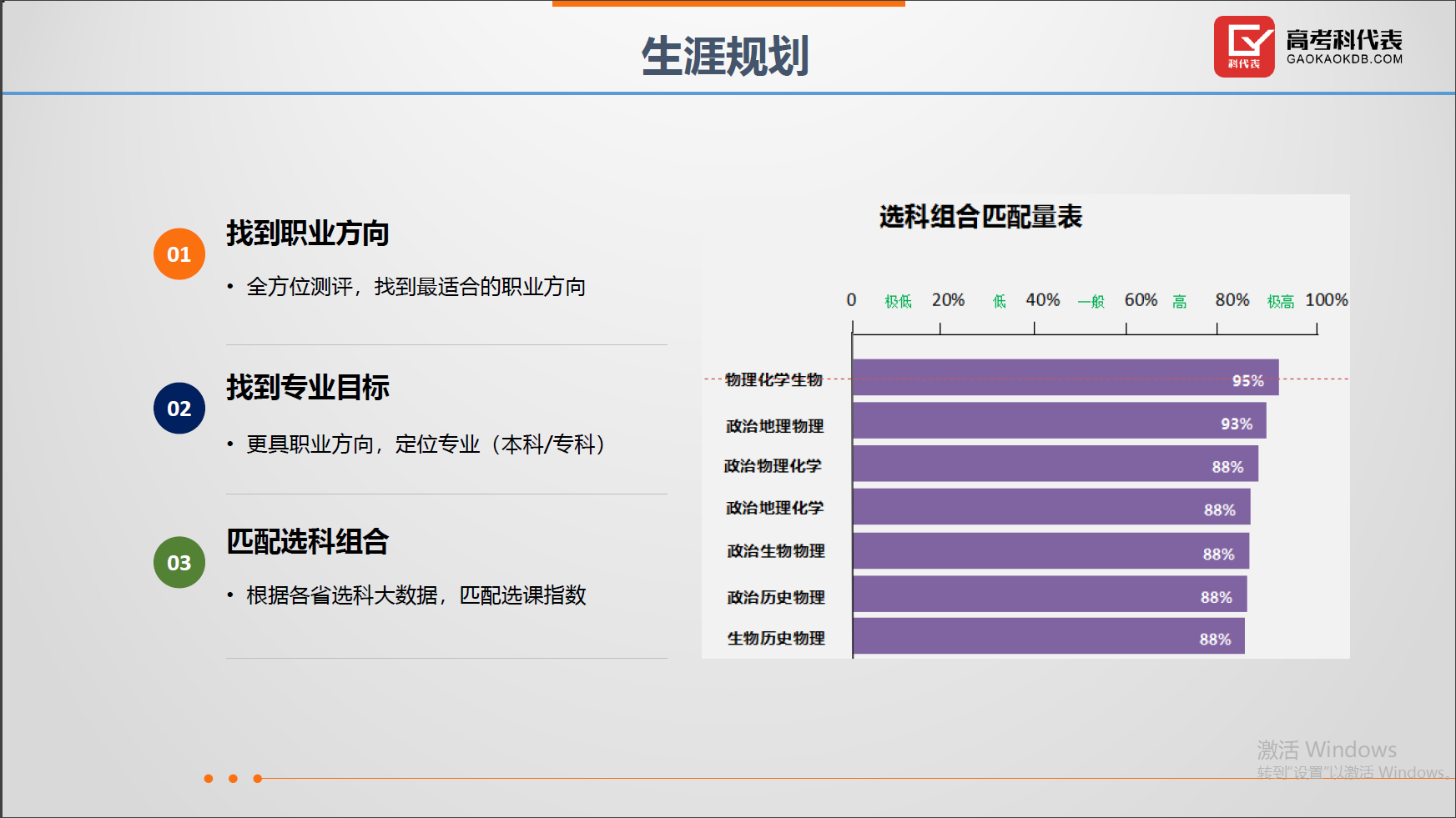 1、随着不分文理而到的是学业规划。学业规划既包括眼前的选考科目规划,也包括专业、职业方向等的生涯规划问题,最重要的是将两者做个有效的连接。 我们所选的科目和志愿填报时的大学专业选择、未来的职业方向是紧密相连的。
