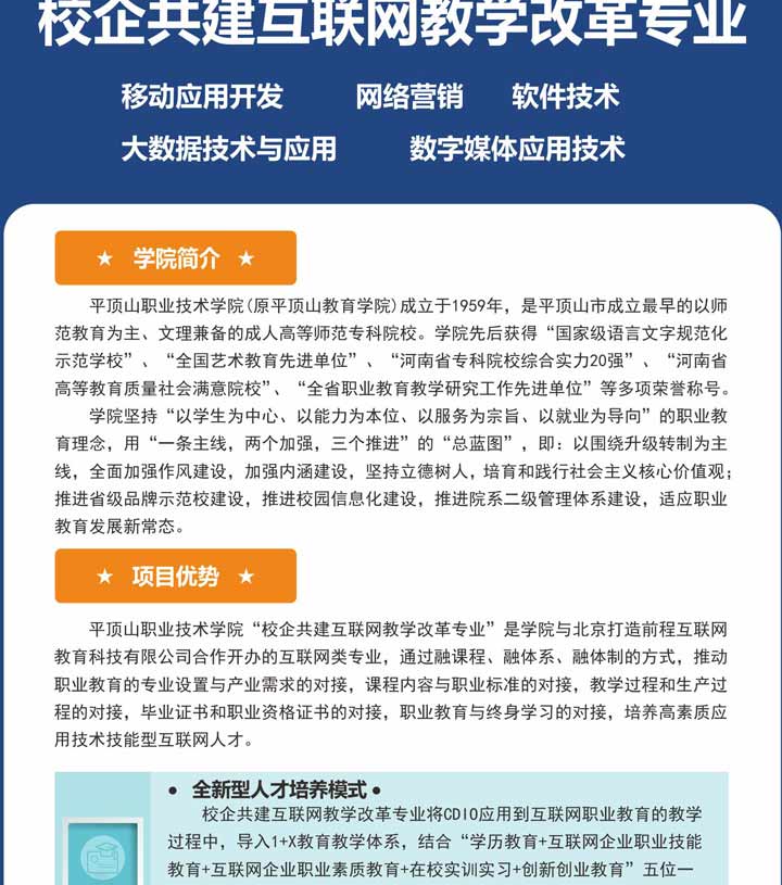 平顶山职业技术学院校企共建互联网教改专业