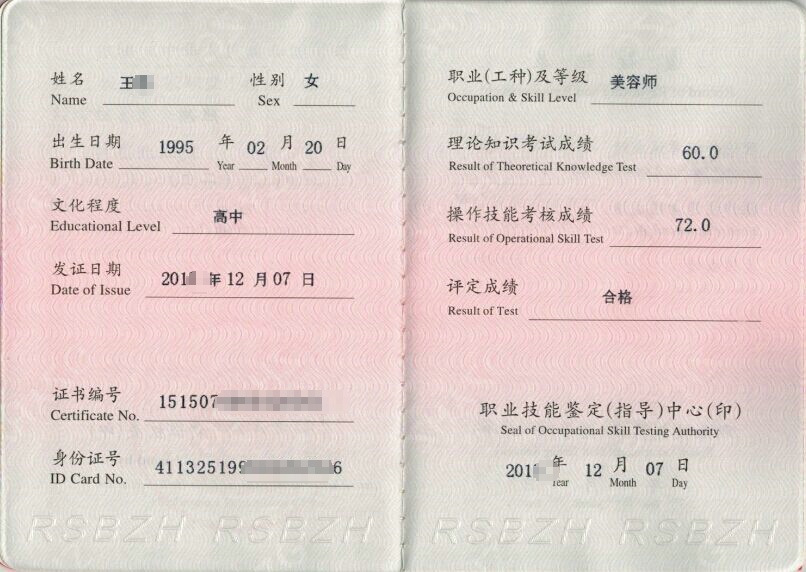 人保部职业资格证. 初级 中级 高级