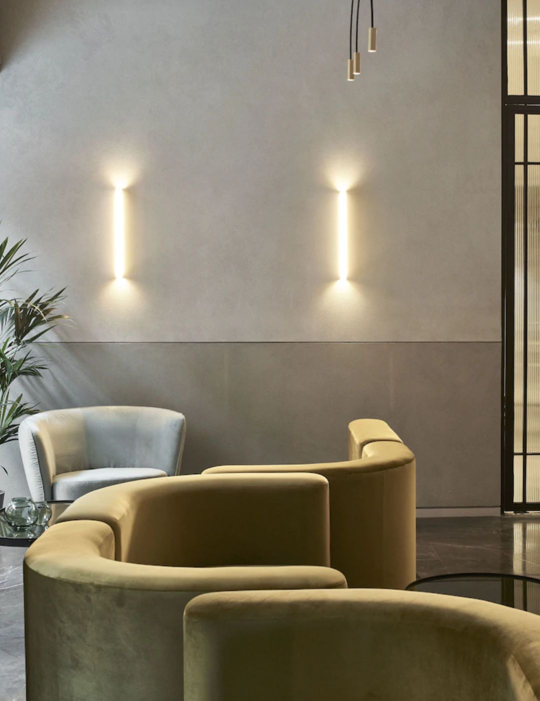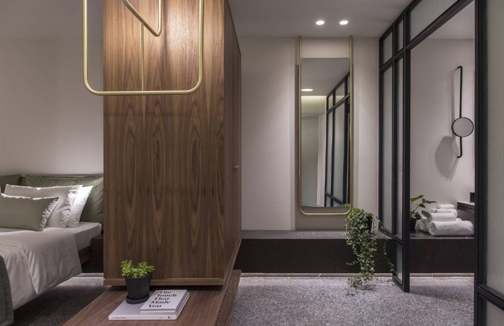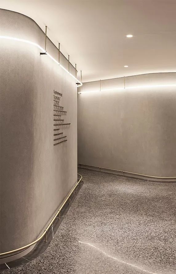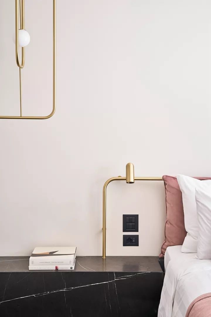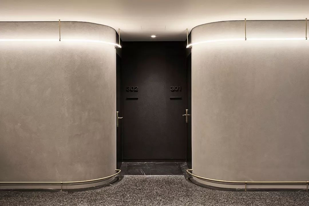 酒店内的走廊布局模仿了雅典市中心的城市布局,上面的连续灯带与底部的管状踢脚线相呼应,一直通向客房入口。