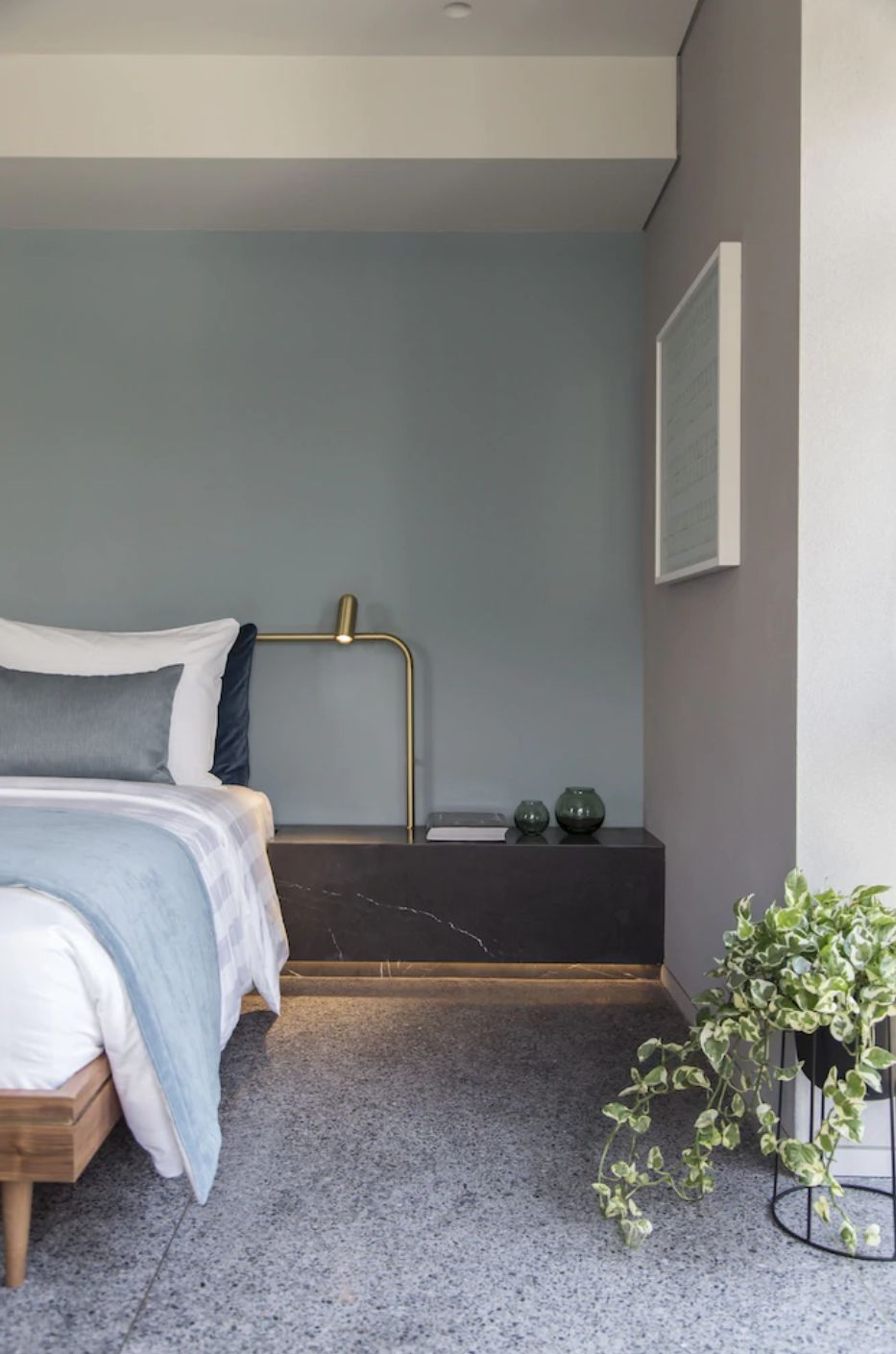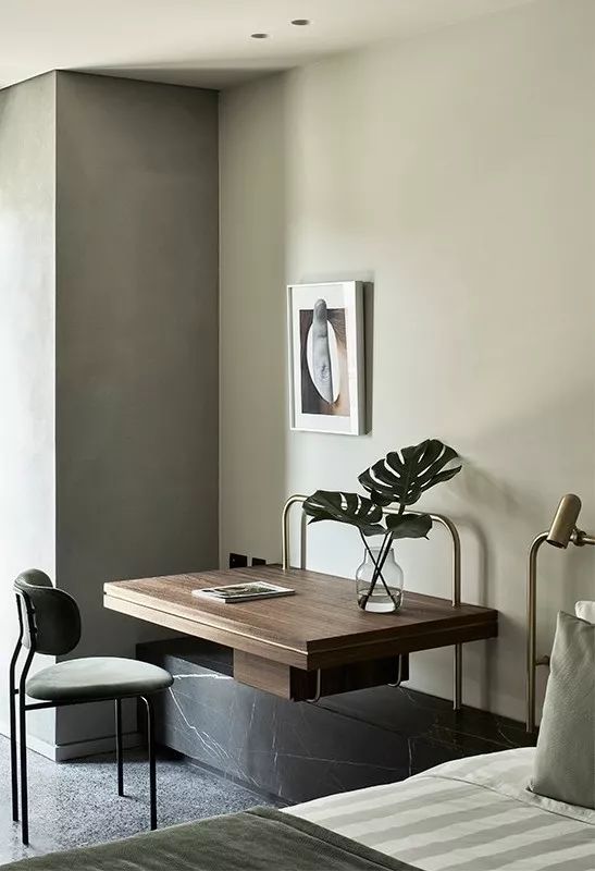 公区整体色调雅致,包括了绿灰色、蓝灰色、豆沙色等,其中也不乏很多当地艺术家的艺术作品。