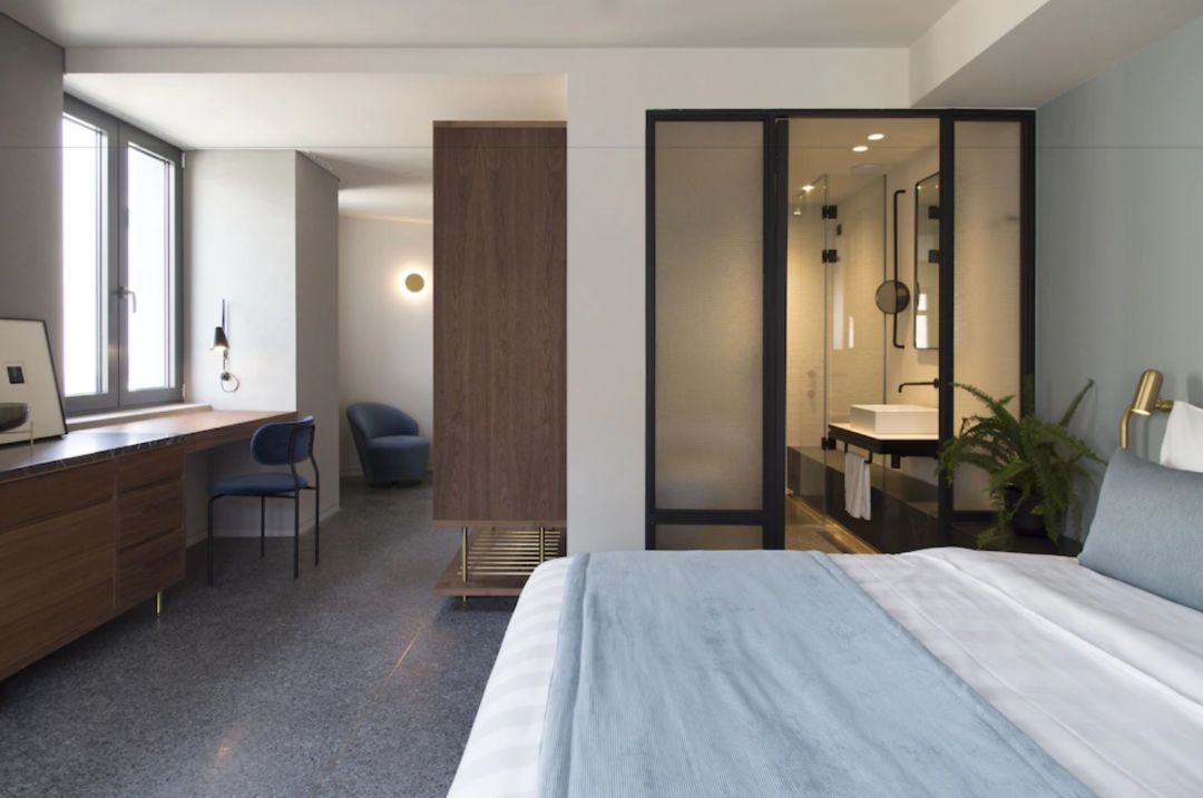酒店虽然外观古老,内部却是新现代主义的风格。