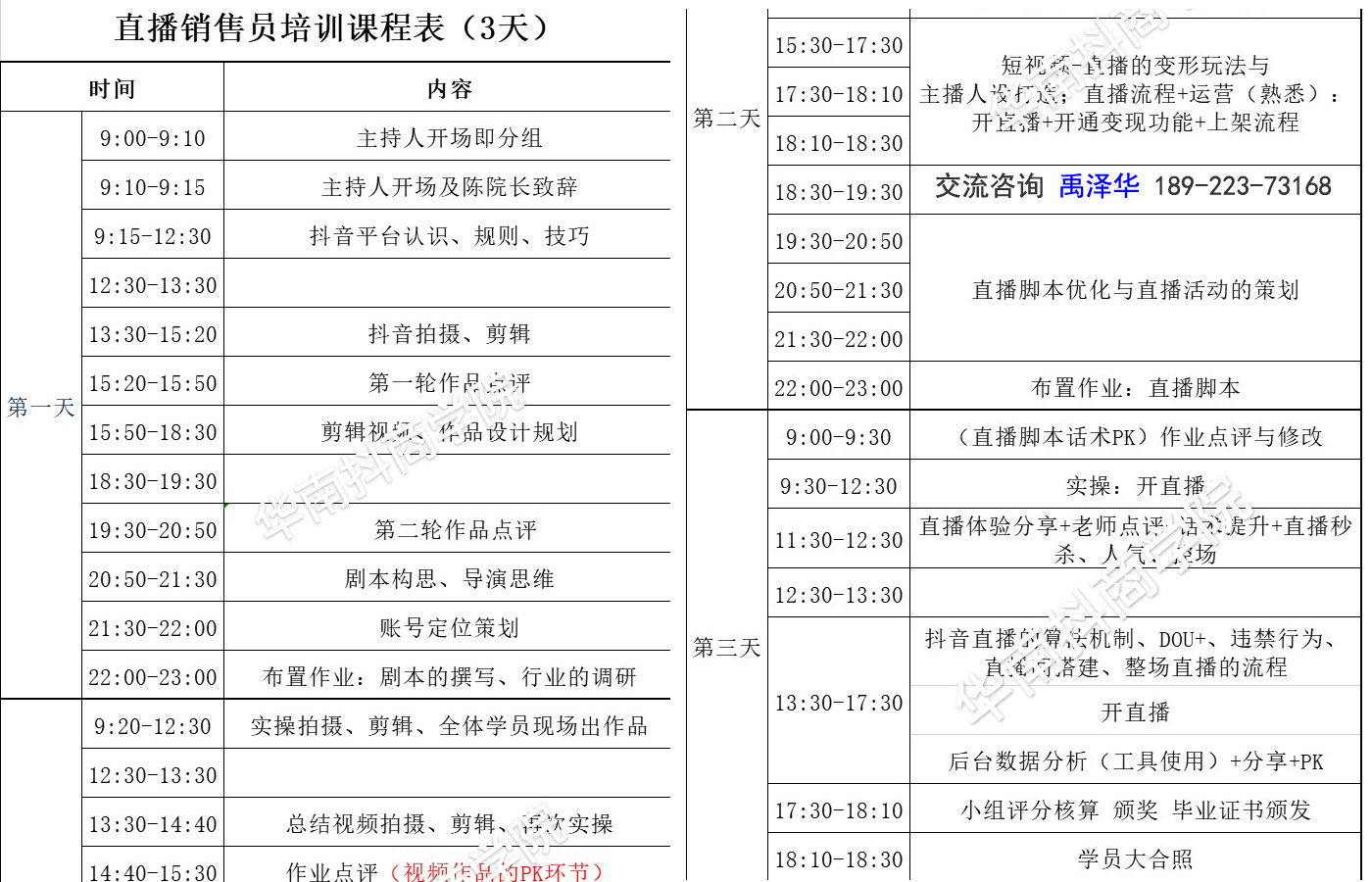 详情:法律、法规、行规、起号、打号、布局、剧本、化妆、拍摄、剪辑、直播间搭建、直播运维等干货