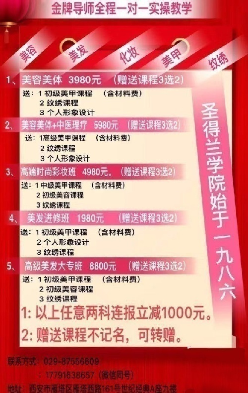 学校是经西安市人力资源和社会保障局批准成立的一所专业技能培训学校,是一所顶级的美容美发化妆名校,同时也是职业资格证书考评基地,在全国极具影响力。学校发展30年来相继开设有美容、化妆、美甲、美发、纹绣等十几个专业,我校讲师均具有国家高级职称,均由国家执业资格考官亲自督导。学校配套国家劳动技能出版社专业教材施教,全日制教学,大型实习大厅全天为学生开放,提供充足的实习场地,电教系统完善,配有香港国际流行的先进技术演示,使学员领略二十一世纪国内外最先进、最新潮、最权威的美容、化妆、纹绣风采。