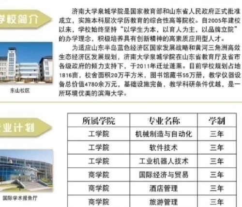 济南大学泉城学院成立于2005年,是国家教育部和山东省人民政府正式批准成立,实施本科层次学历教育的综合性高等院校。我校始终坚持“以学生为本,以育人为主,以品牌立院”的办学理念,积极培养具有创新精神的高素质应用型人才。