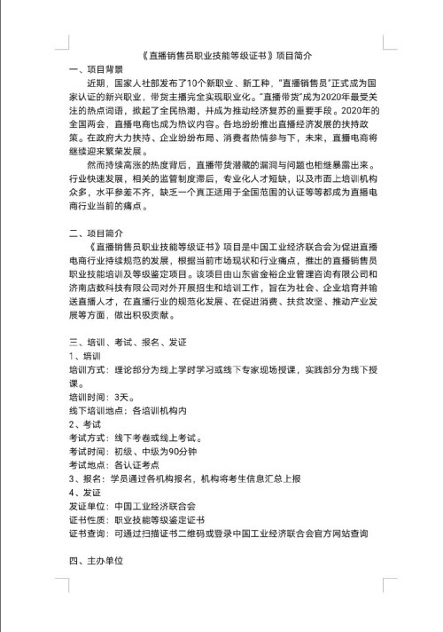 山东金裕企业管理咨询有限公司简况:山东金裕企业管理咨询有限公司(以下简称“山东金裕”)定位于企业的管理咨询服务、人才服务,为创业者和在职的专业技术人员提供职业技能、技术培训。公司成立于2019年,公司前身以培训团队的形式活跃于职业技能领域多年,先后开展了民生服务、汽车服务、娱乐游戏服务、餐饮服务等领域的职业技能培训。在民生领域参与了“绿之源”、“黄马褂曹操到”等行业内优质项目的职业技能培训,在汽车服务领域,参与了“汽车人家”、“鼎护”“靓车洁”等项目的职业技能培训,在游戏娱乐产业参与了“朵拉A萌全脑教育”、“聚影咖”等项目的职业技能培训,在餐饮服务领域参与了“伴渔笙、素百味、和禧顺、德春禧”等项目的培训。业务范围覆盖华南和西南等众多区域,培训的人次达万余次,目前已初步开展直播电商领域的培训,未来将依托已有的经验,顺应国家人才发展战略,继续深耕人才服务和人才培养领域,在更高层次、更专业的领域展开相关人才的职业技能培训