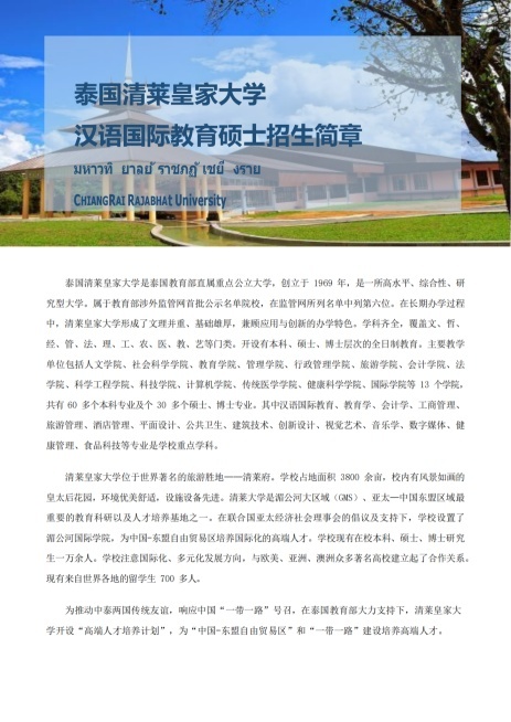 泰国清莱皇家大学北京办公室,负责大学在华招生宣传工作。专升本升硕、硕士、博士项目,免语言要求,泰文或英文授课,有翻译。
