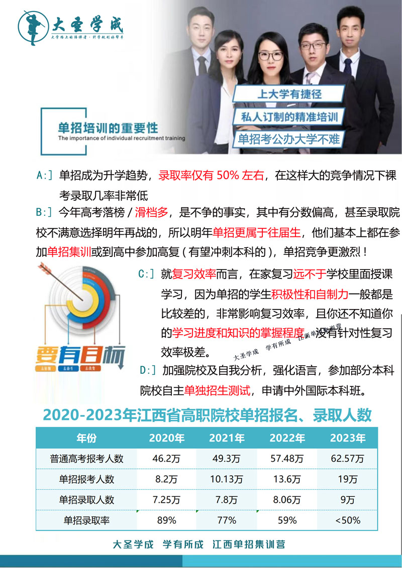 江西单招培训高职院校江西单招培训机构大圣学成集训营销