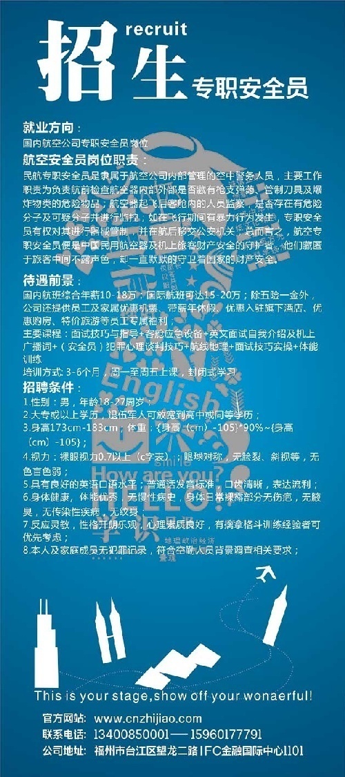 民航系统实力就业,各大航空公司乘务,安全员直接就业,航空公司直签行政岗,机场安检,值机,VIP贵宾厅,免税店等岗位就业,少量航空公司带户口岗位就业,以及一些免费机场实习岗位(需量大) 邀请广大代理院校合作利润丰厚,投入少 回报高 V 壹柒陆零壹陆零捌伍零零
