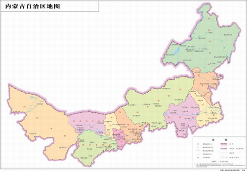 内蒙古自治区,简称“内蒙古”,首府呼和浩特。地处中国北部,地理上位于北纬37°24′-53°23′,东经97°12′-126°04′之间,东北部与黑龙江、吉林、辽宁、河北交界,南部与山西、陕西、宁夏相邻,西南部与甘肃毗连,北部与俄罗斯、蒙古接壤,横跨东北、华北、西北地区。