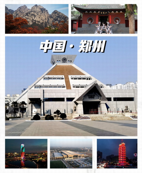 (概述图依次为嵩山、少林寺、河南博物院、郑州CBD、郑州东站、二七纪念塔)