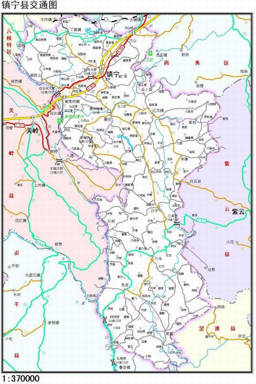 镇宁布依族苗族自治县,隶属贵州省安顺市,位于贵州省西南部珠江水系与长江水系分水岭之间。地处东经105°35’至106°1’,北纬25°25’至26°11’。东与安顺市西秀区、紫云苗族布依族自治县相邻;南濒北盘江与黔西南自治州望谟、贞丰两县隔江相望,西同关岭布依族苗族自治县接壤;北与普定县、六枝特区毗邻。县人民政府所在地镇宁。全县土地面积1717.?29平方公里。镇宁境内长期居住着汉族、布依族、苗族、仡佬族等23个民族。辖5个街道,8个镇,3个乡,4个社区。根据第七次人口普查数据,截至2020年11月1日零时,镇宁布依族苗族自治县常住人口为299696人。