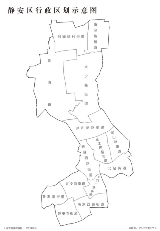 静安区隶属上海市,位于上海市中心城区中部,与六个区相邻,东与黄浦区、虹口区、宝山区为邻;西长宁区、普陀区、宝山区交界;南临长乐路,与徐汇区衔接;北与宝山区接壤。2015年10月,国务院批复原闸北、静安两区“撤二建一”,设立新的静安区。全区总面积37平方千米,下辖13个街道1个镇,264个居委会,1个村委会。根据第七次全国人口普查数据,截至2020年11月1日零时,静安区常住人口975707人。