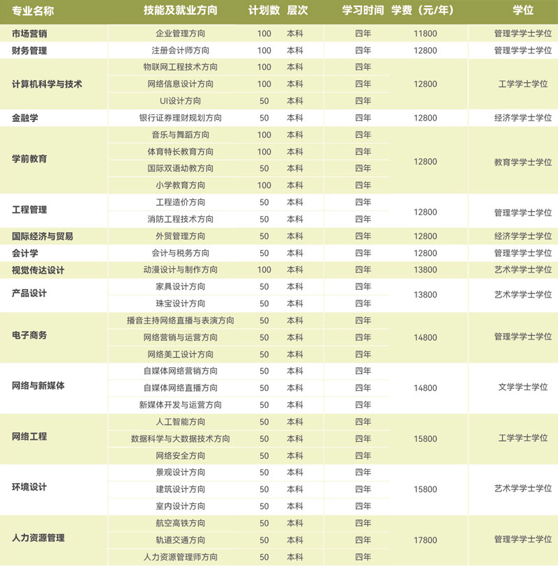 学校坚持走“产业引导专业,专业服务行业,行业促进就业”的人才培养之路积极践行‘四位- -体”的人才培养模式,构建了学历教育课程+专业技术实训实战课程+专项技能通识课程+职业资格认证课程等四大课程模块,探索出了-套通识教育与职业技能教育相结合的复合型人才培养体系,让学生在取得学历文凭的同时,还能熟练掌握相应专业方向的专业技术和技能。
