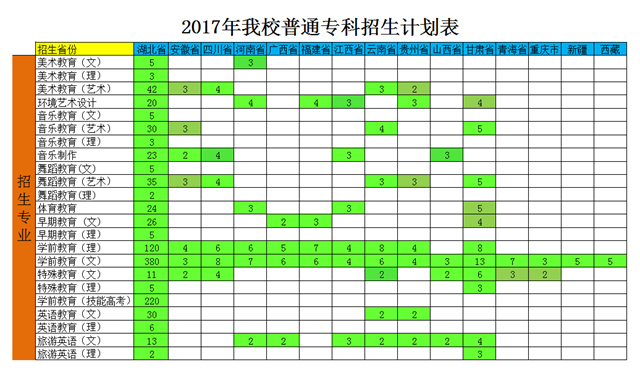湖北幼儿师范高等专科学校2017年高考招生计划