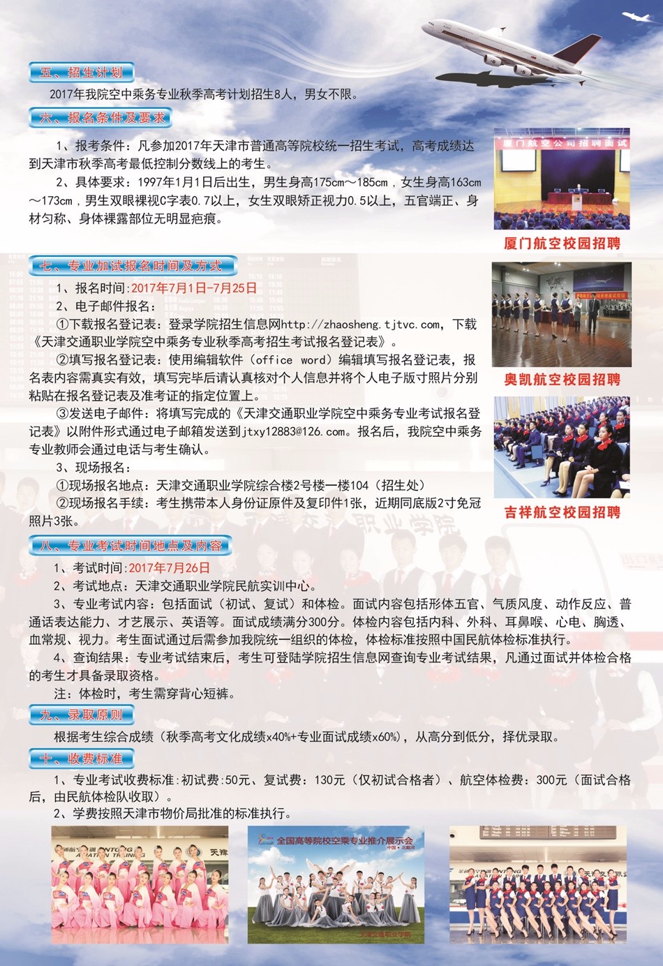 天津交通职业学院2017空中乘务专业秋季高考招生简章