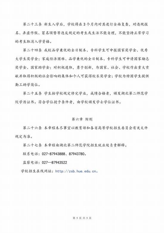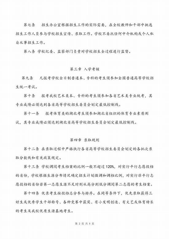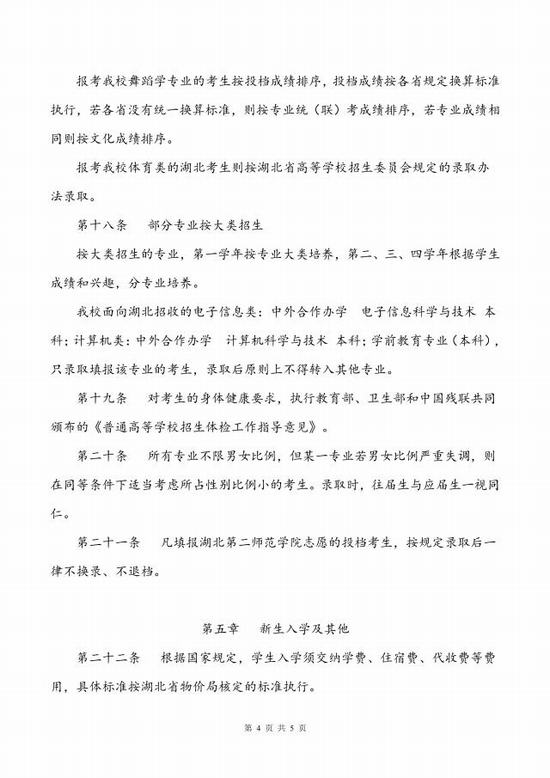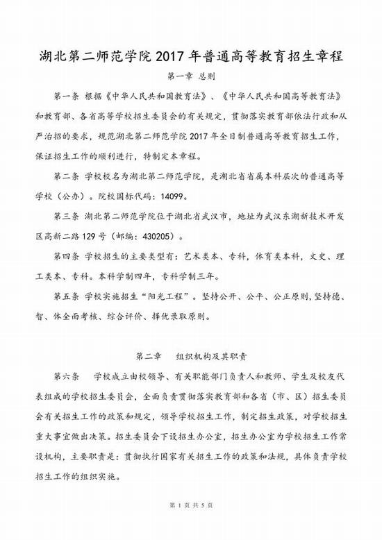 湖北第二师范学院招生章程
