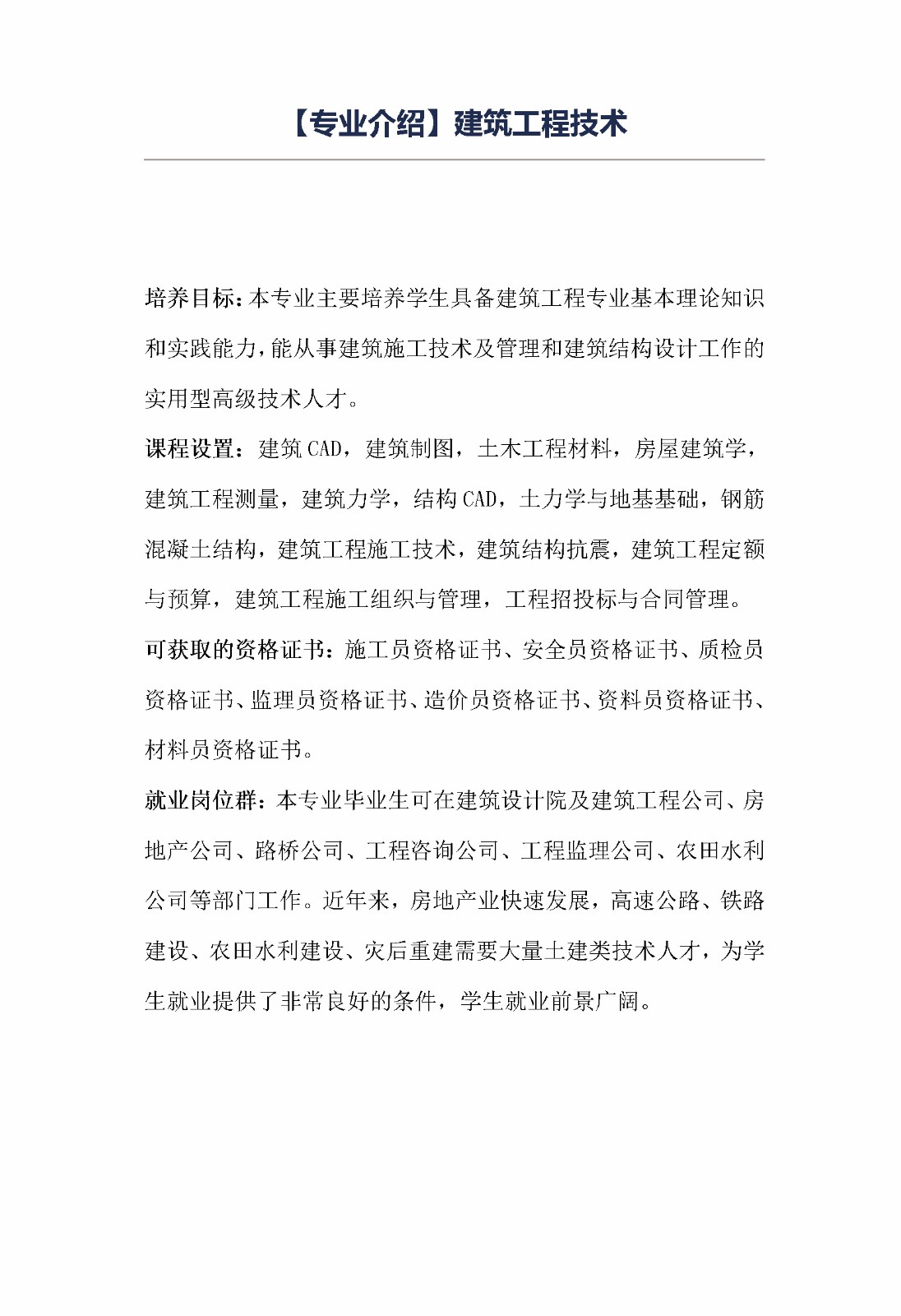 宿迁职业技术学院土木工程系专业