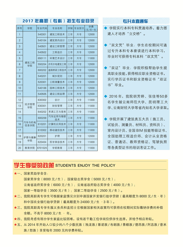 云南城市建设职业学院2017年招生高职(专科)简章