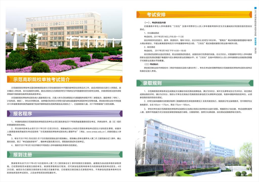 2017年西安航空职业技术学院单独考试招生简章
