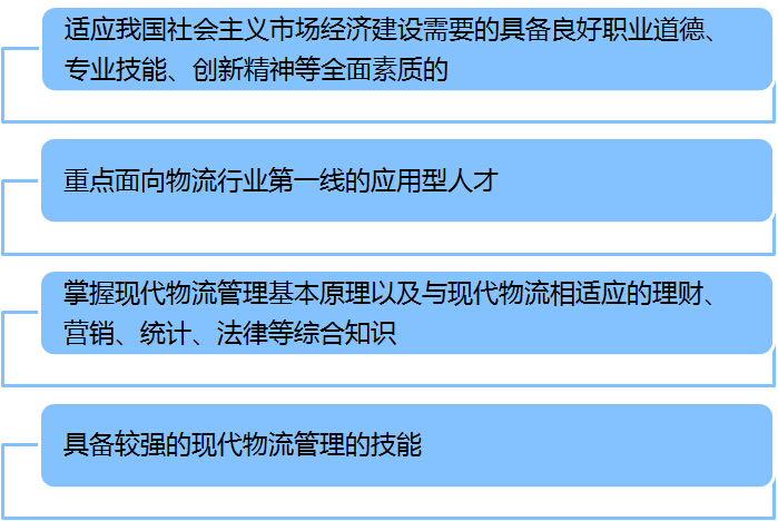 培养学生成为可在制造业、流通业以及各类物流企业从事物流仓储与配送、物流信息技术系 统等供应链各环节的业务操作和一线管理工作的“能上岗、能转岗”的应用技术型人才。