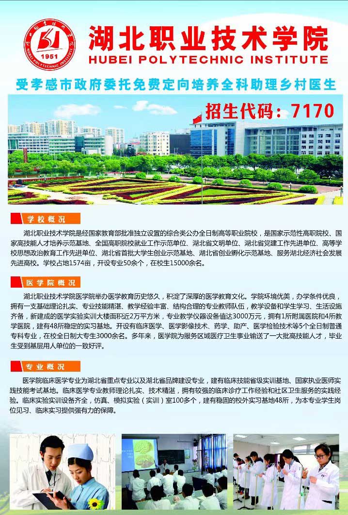 湖北职业技术学院受孝感市委托免费定向培养全科助理乡村医生招生简章