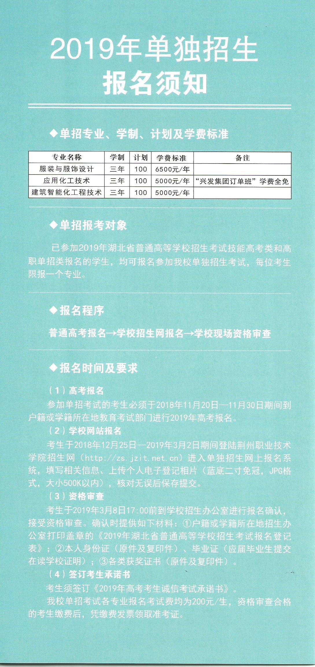 荆州职业技术学院“一村多名大学生计划”2019年招生简章