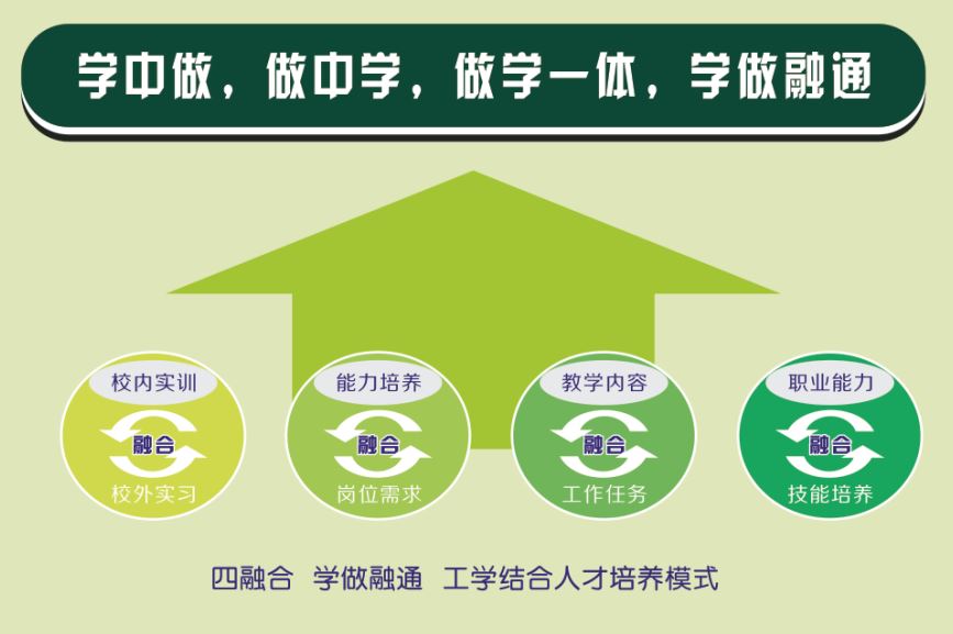 先进的人才培养模式——学院大力实施“四融合,学做融通”、“4321”等工学结合人才培养模式,推行基本技能、综合技能、顶岗技能三阶段实训模式,大力开展教学改革,建立“快乐”课堂,重点培养学生的职业素质与职业能力。